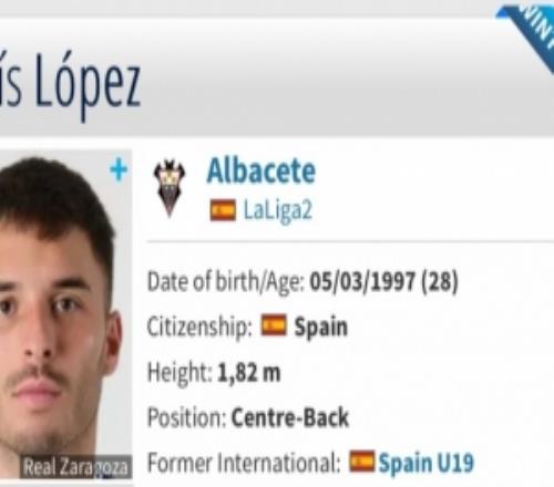 体育播报1月22日宣 根据德转网站信息显示,上赛季效力泰山的西班牙中卫路易斯·洛佩斯已经自由身加盟西乙阿尔...