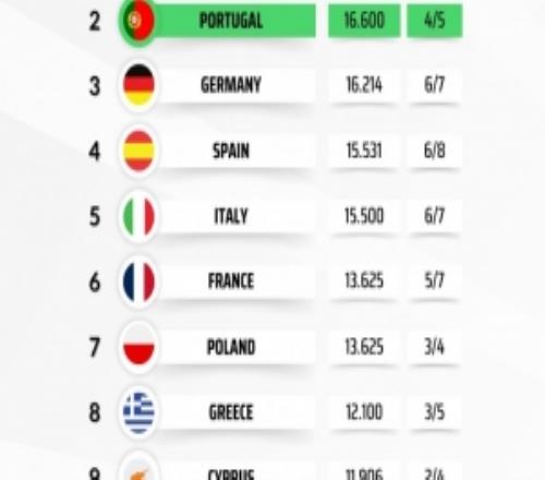 本赛季欧战积分排名:英超居首,葡超、德甲、西甲、意甲前五