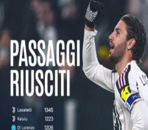 本赛季意甲成功传球次数榜:洛卡特利居首,魔笛第四、阿坎吉第五