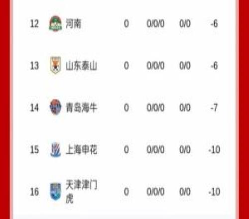 9队负分开局!新赛季中超积分榜:申花、津门虎10,蓉城等未扣分